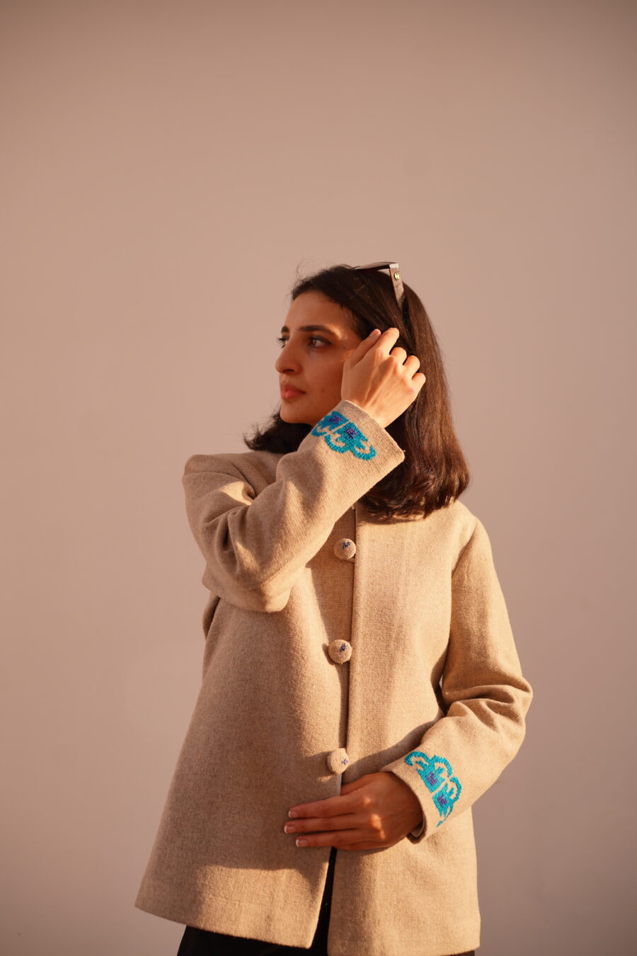 Wrap yourself in the soul of the mountains with our Warm designer wool coat, hand-embellished with timeless Turankish  motifs—a tribute to the majestic flora of Northern Pakistan.